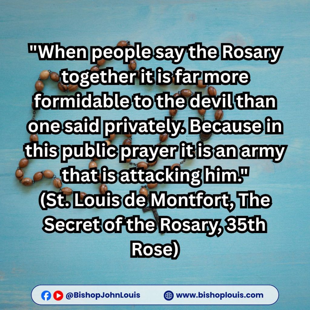“When people say the Rosary together it is far more formidable to the devil than one said privately. Because in this public prayer it is an army that is attacking him.”