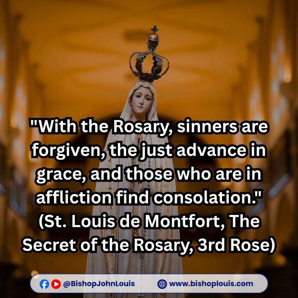 “With the Rosary, sinners are forgiven, the just advance in grace, and those who are in affliction find consolation.”