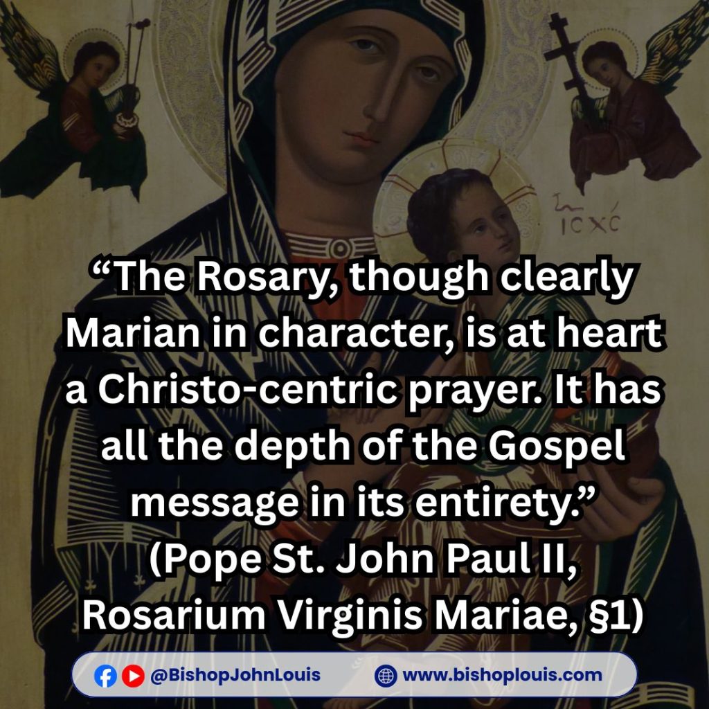 “The Rosary, though clearly Marian in character, is at heart a Christo-centric prayer. It has all the depth of the Gospel message in its entirety.”