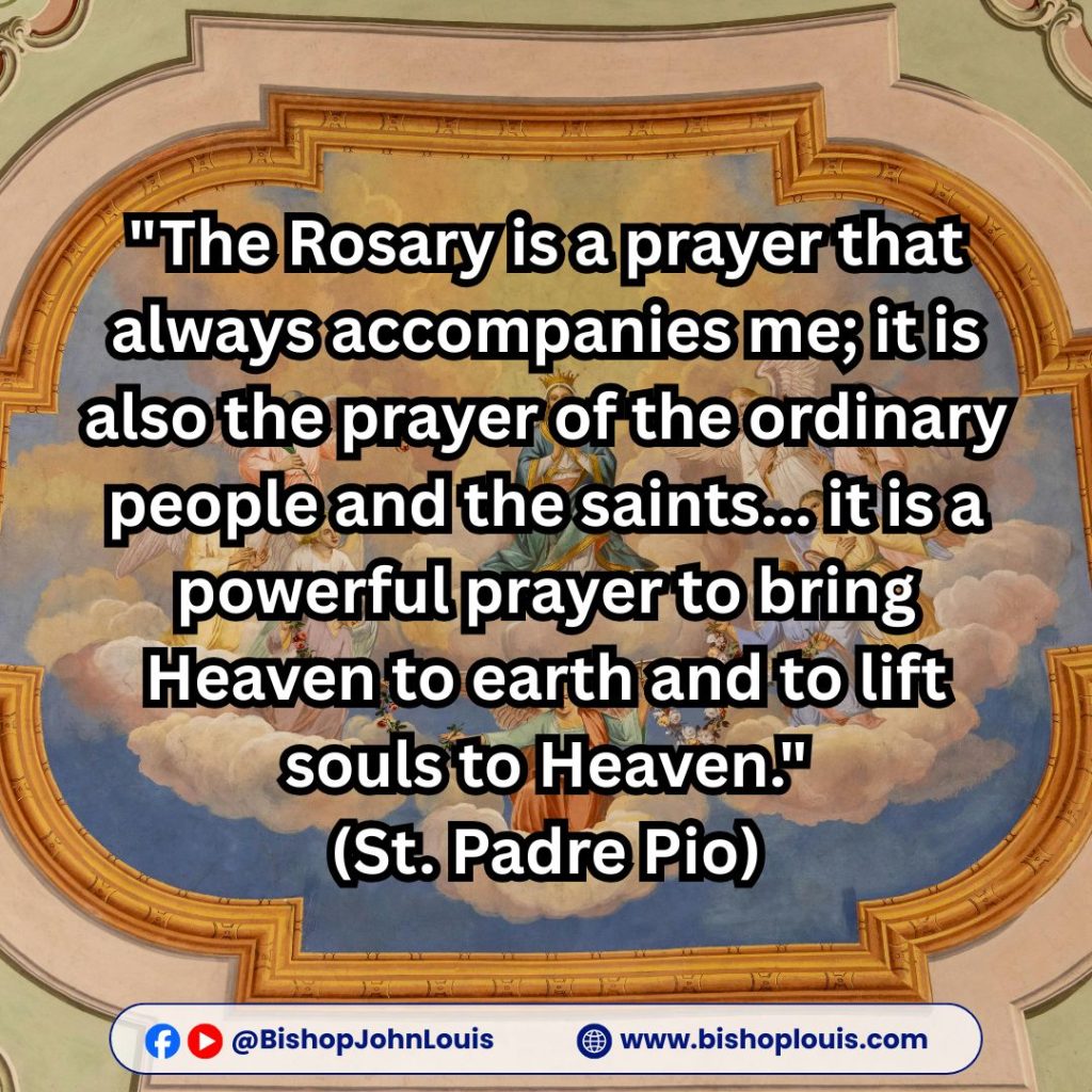 “The Rosary is a prayer that always accompanies me; it is also the prayer of the ordinary people and the saints… it is a powerful prayer to bring Heaven to earth and to lift souls to Heaven.”