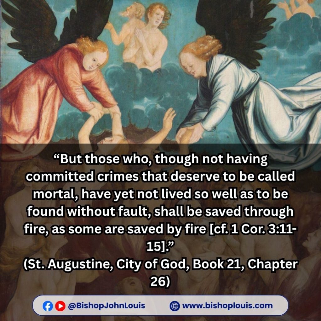 “But those who, though not having committed crimes that deserve to be called mortal, have yet not lived so well as to be found without fault, shall be saved through fire, as some are saved by fire [cf. 1 Cor. 3:11-15].”