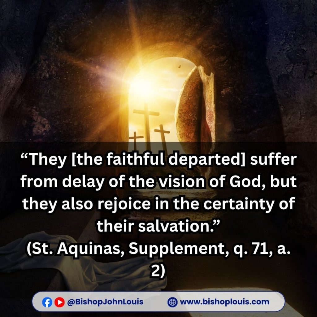 “They [the faithful departed] suffer from delay of the vision of God, but they also rejoice in the certainty of their salvation.”