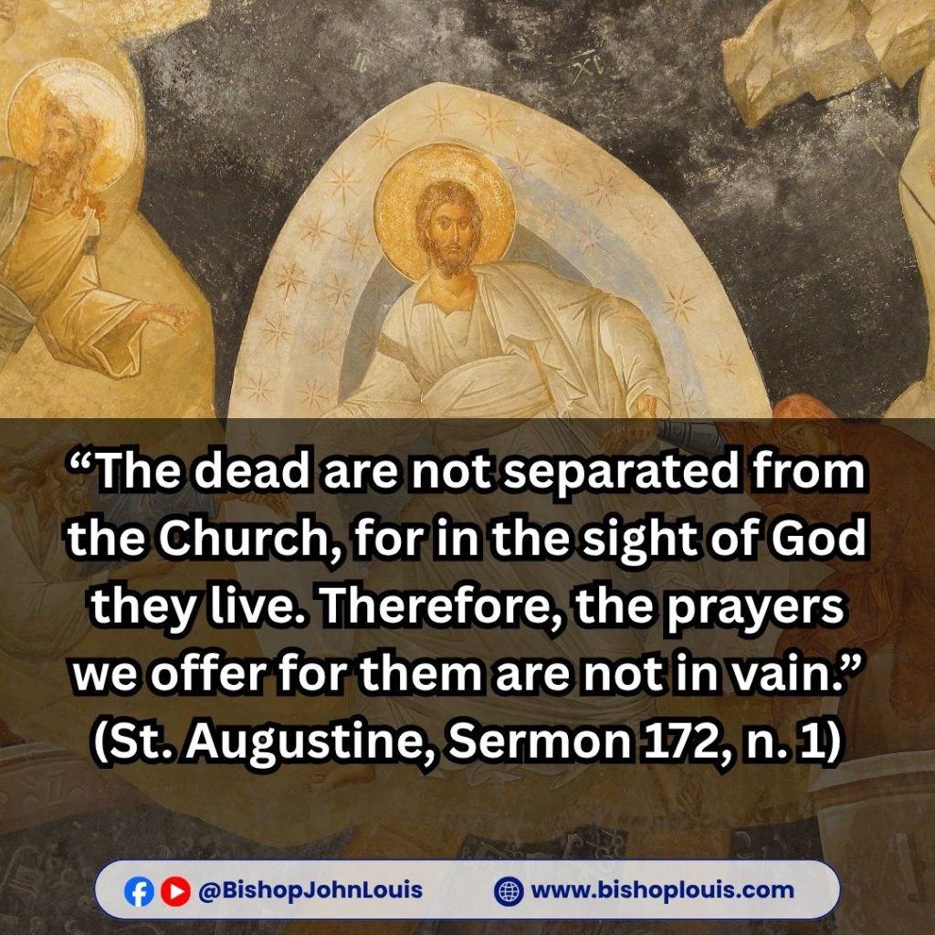 “The dead are not separated from the Church, for in the sight of God they live. Therefore, the prayers we offer for them are not in vain.”
