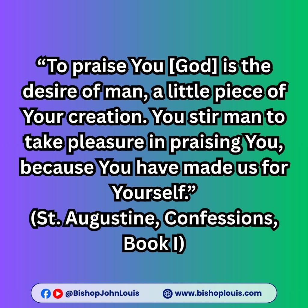 “To praise You [God] is the desire of man, a little piece of Your creation. You stir man to take pleasure in praising You, because You have made us for Yourself.”