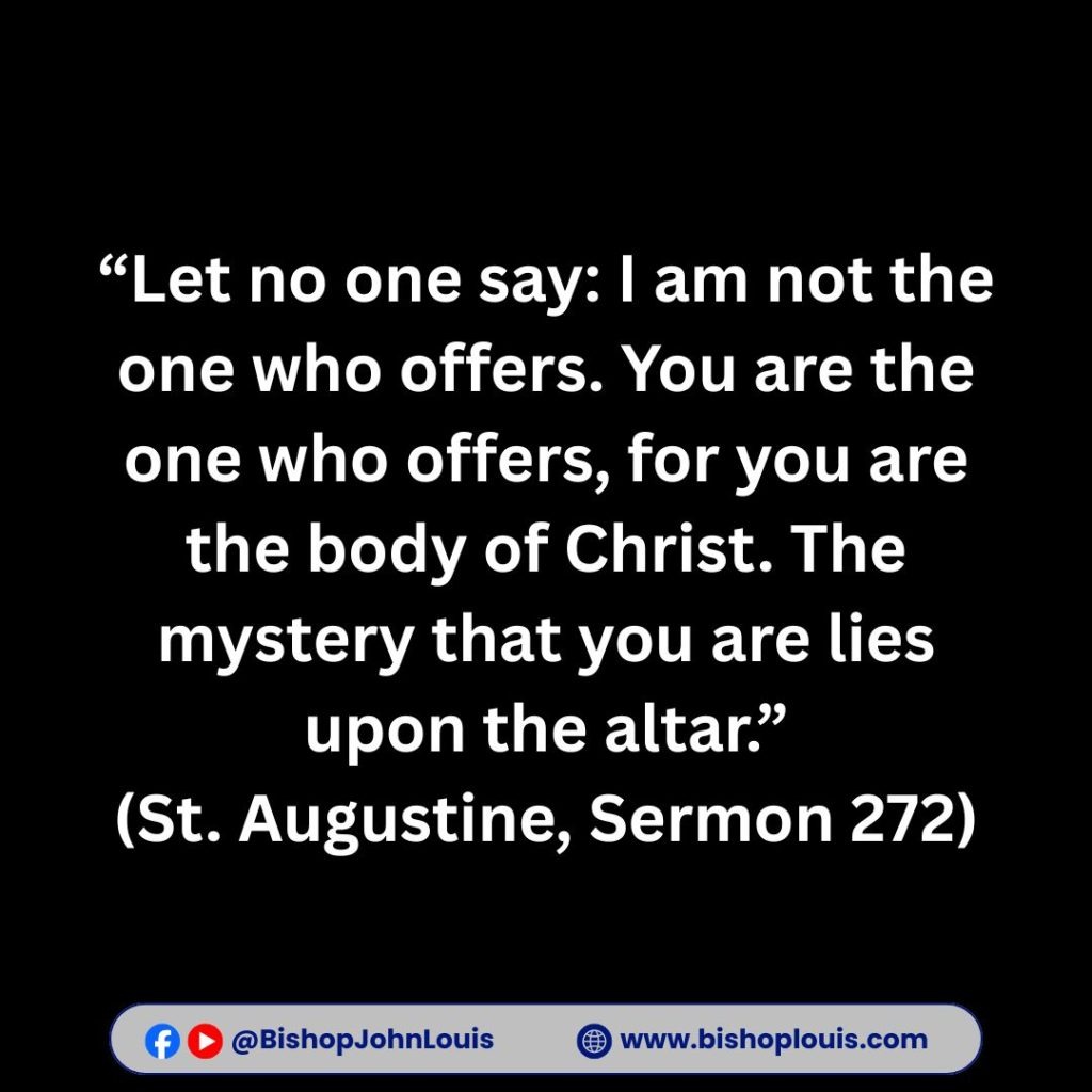 “Let no one say: I am not the one who offers. You are the one who offers, for you are the body of Christ. The mystery that you are lies upon the altar.”
