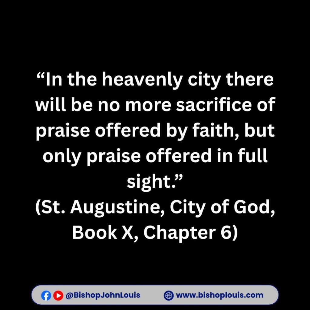 “In the heavenly city there will be no more sacrifice of praise offered by faith, but only praise offered in full sight.”