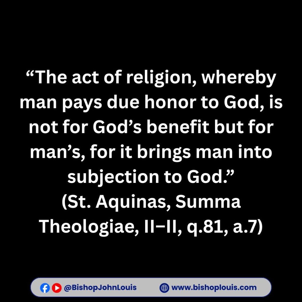 “The act of religion, whereby man pays due honor to God, is not for God’s benefit but for man’s, for it brings man into subjection to God.”
