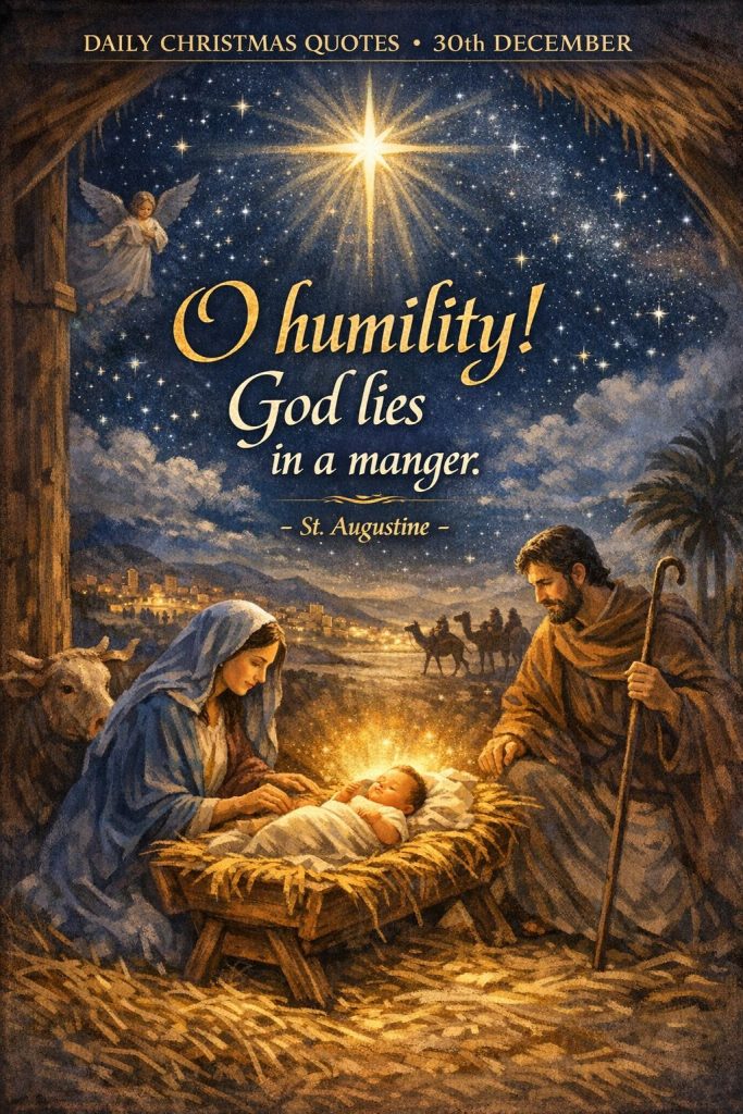 DAILY CHRISTMAS QUOTES – 30th DecemberBy Bishop John Kobina Louis / December 30, 2025 / Quotes / 1 minute of reading St. Augustine – “O humility! God lies in a manger.” Share this with a friend WhatsApp Facebook Twitter / X Pinterest Linkedin