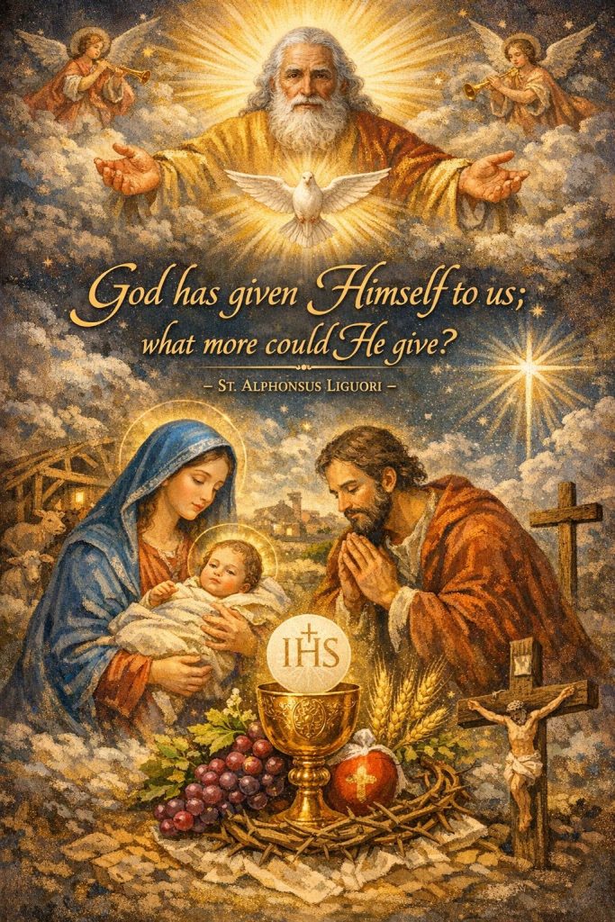 DAILY CHRISTMAS QUOTES – 1st JanuaryBy Bishop John Kobina Louis / January 1, 2026 / Quotes / 1 minute of reading St. Alphonsus Liguori – “God has given Himself to us; what more could He give?” Share this with a friend WhatsApp Facebook Twitter / X Pinterest Linkedin