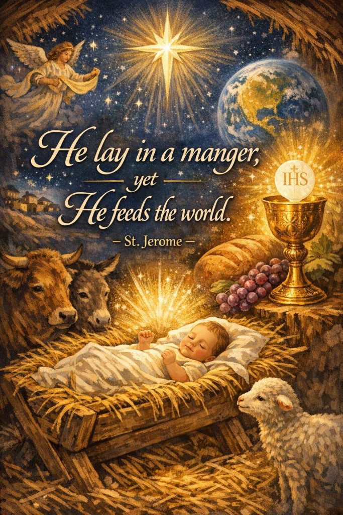 DAILY CHRISTMAS QUOTES – 8th JanuaryBy Bishop John Kobina Louis / January 8, 2026 / Quotes / 1 minute of reading St. Jerome – “He lay in a manger, yet He feeds the world.” Share this with a friend WhatsApp Facebook Twitter / X Pinterest Linkedin