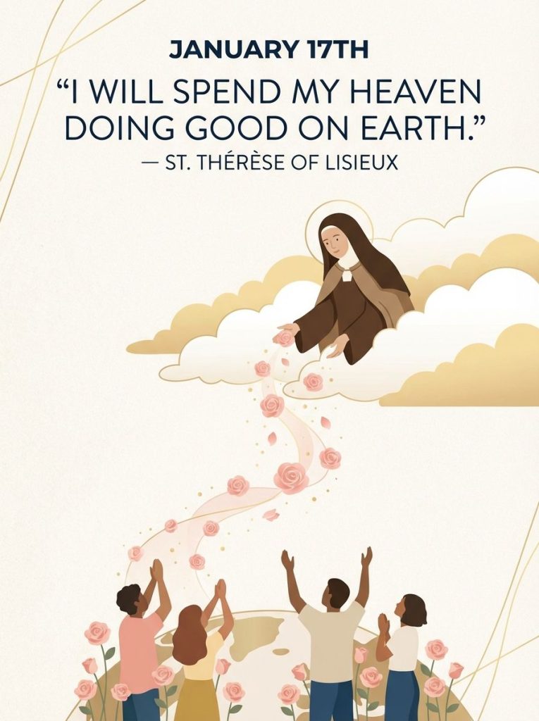Daily Catholic Quote for 17th JanuaryBy Bishop John Kobina Louis / January 17, 2026 / Quotes / 1 minute of reading St. Therese of Lisieux:“I will spend my heaven doing good on earth.” Share this with a friend WhatsApp Facebook Twitter / X Pinterest Linkedin