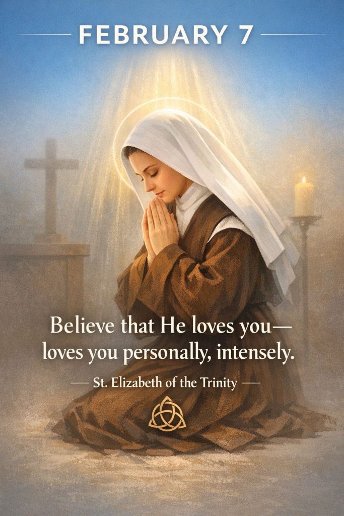 Catholic Quote for FEBRUARY 7By Bishop John Kobina Louis / February 7, 2026 / Quotes / 1 minute of reading St. Elizabeth of the Trinity – “Believe that He [God] loves you—loves you personally, intensely.” Share this with a friend WhatsApp Facebook Twitter / X Pinterest Linkedin
