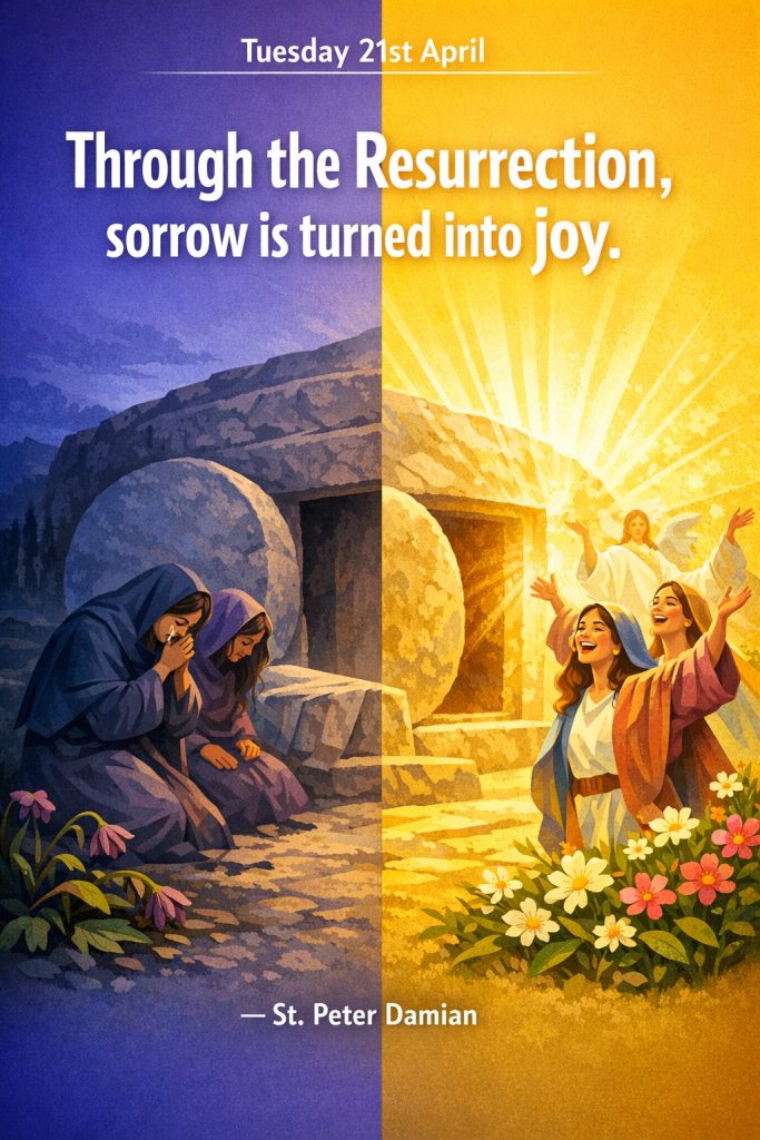 Quote for Tuesday 21st AprilBy Bishop John Kobina Louis / April 21, 2026 / Quotes / 1 minute of reading “Through the Resurrection, sorrow is turned into joy.”— St. Peter Damian Share this with a friend WhatsApp Facebook Twitter / X Pinterest Linkedin